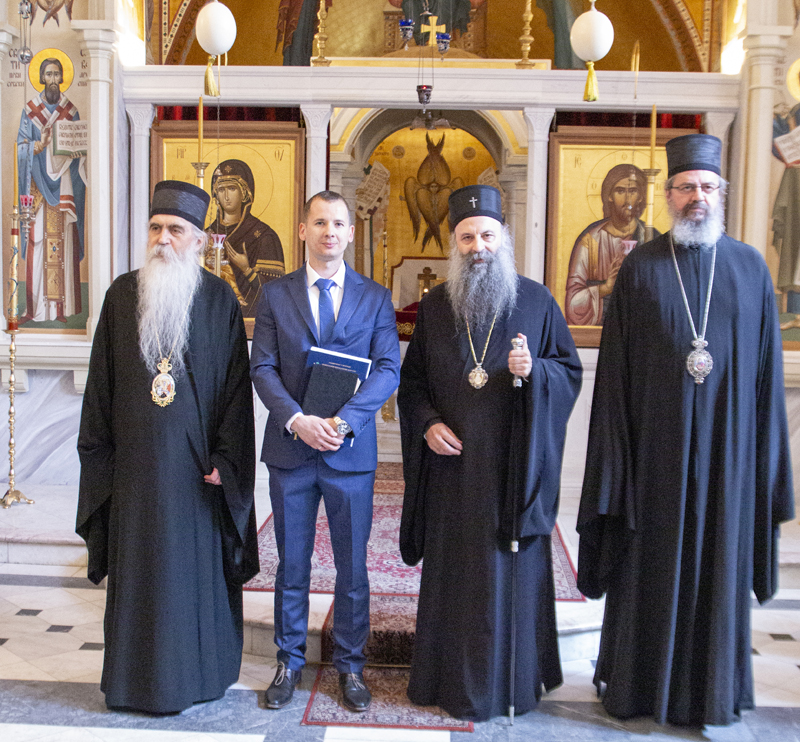 На самом крају одбране присутнима се обратио и Његова Светост Патријарх српски г. Порфирије, редовни професор ПБФ и ментор дисертације рекавши да га посебно радује што овај рад показује како теологија може истовремено да постоји и као академска дисциплина и да чврсто стоји у предању Цркве и изграђује живот Цркве, честитавши кандидату на успешном раду. Након обраћања Његове Светости и кратког већања чланова комисије, председник комисије, проф. Таталовић, објавио је присутном аудиторијуму да је асистент Михајловић успешно одбранио дисертацију и честитао му у име свих.