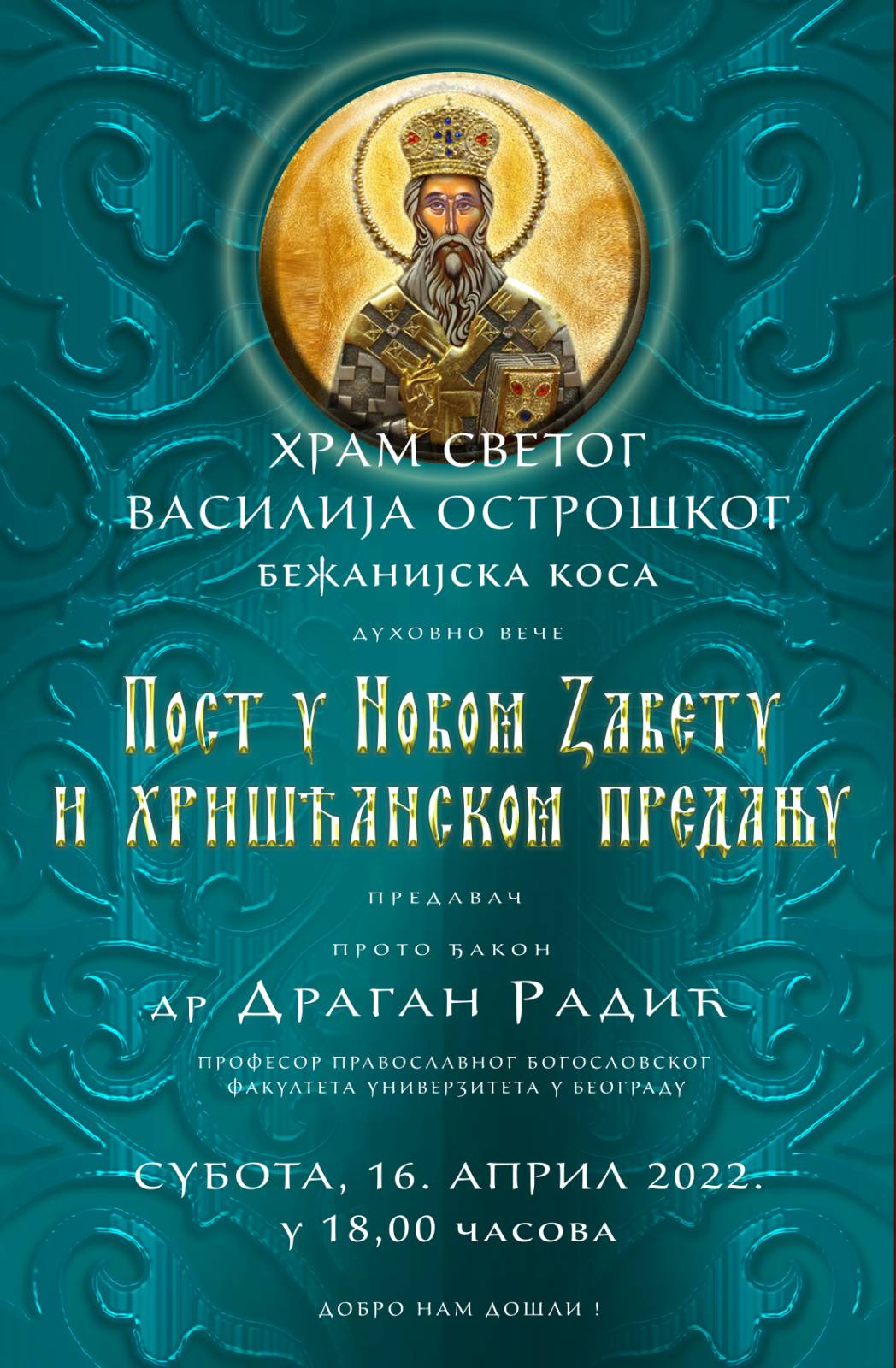 Предавање проф. др Драгана Радића у Храму Светог Василија Острошког на Бежанијској коси можете послушати на овом линку.