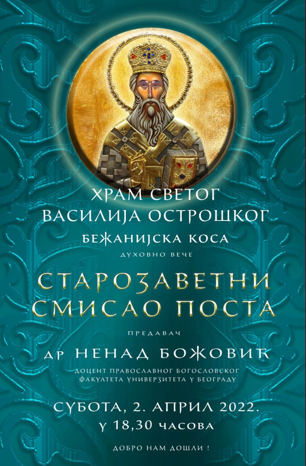 Предавање доц. др Ненада Божовића у Храму Светог Василија Острошког на Бежанијској коси можете послушати на овом линку.